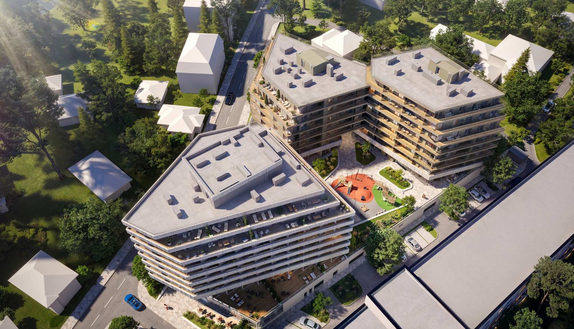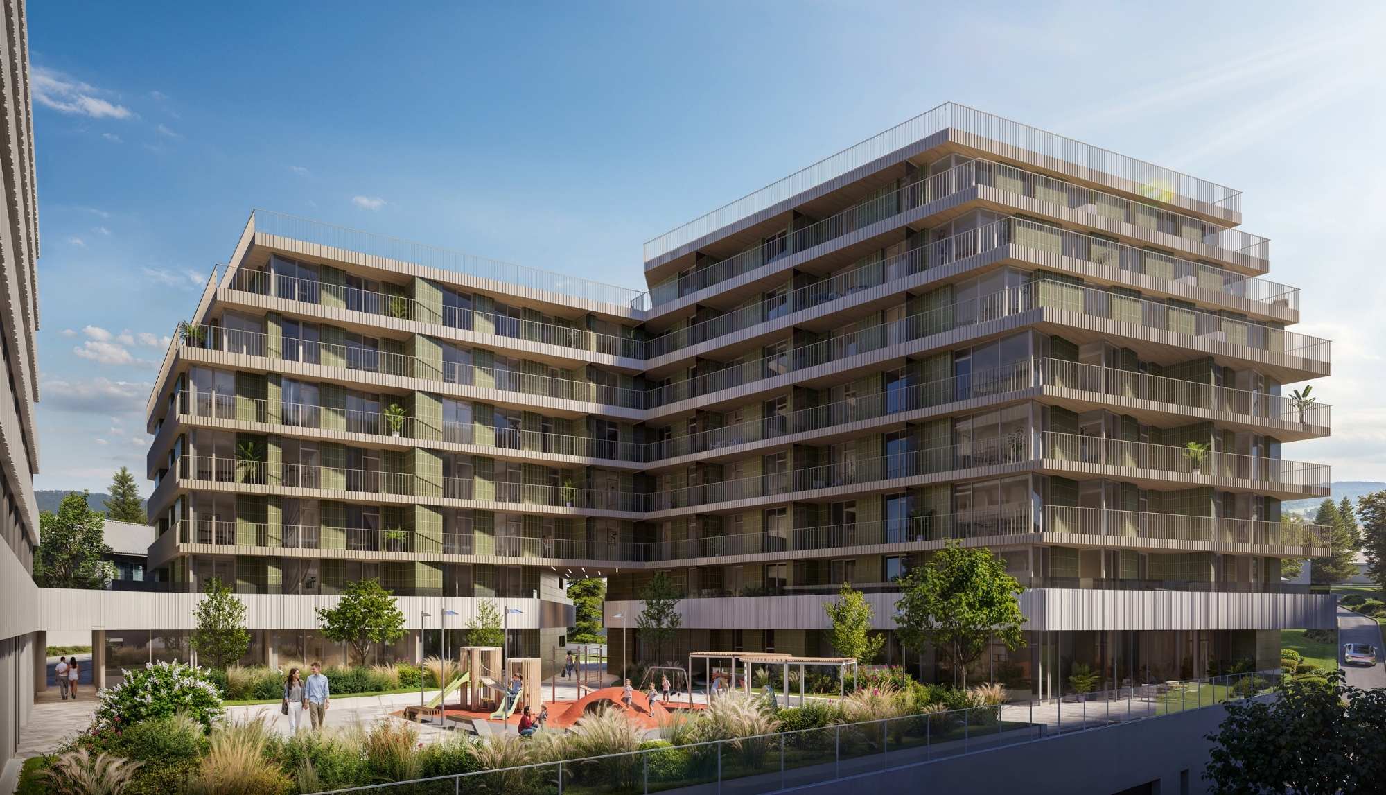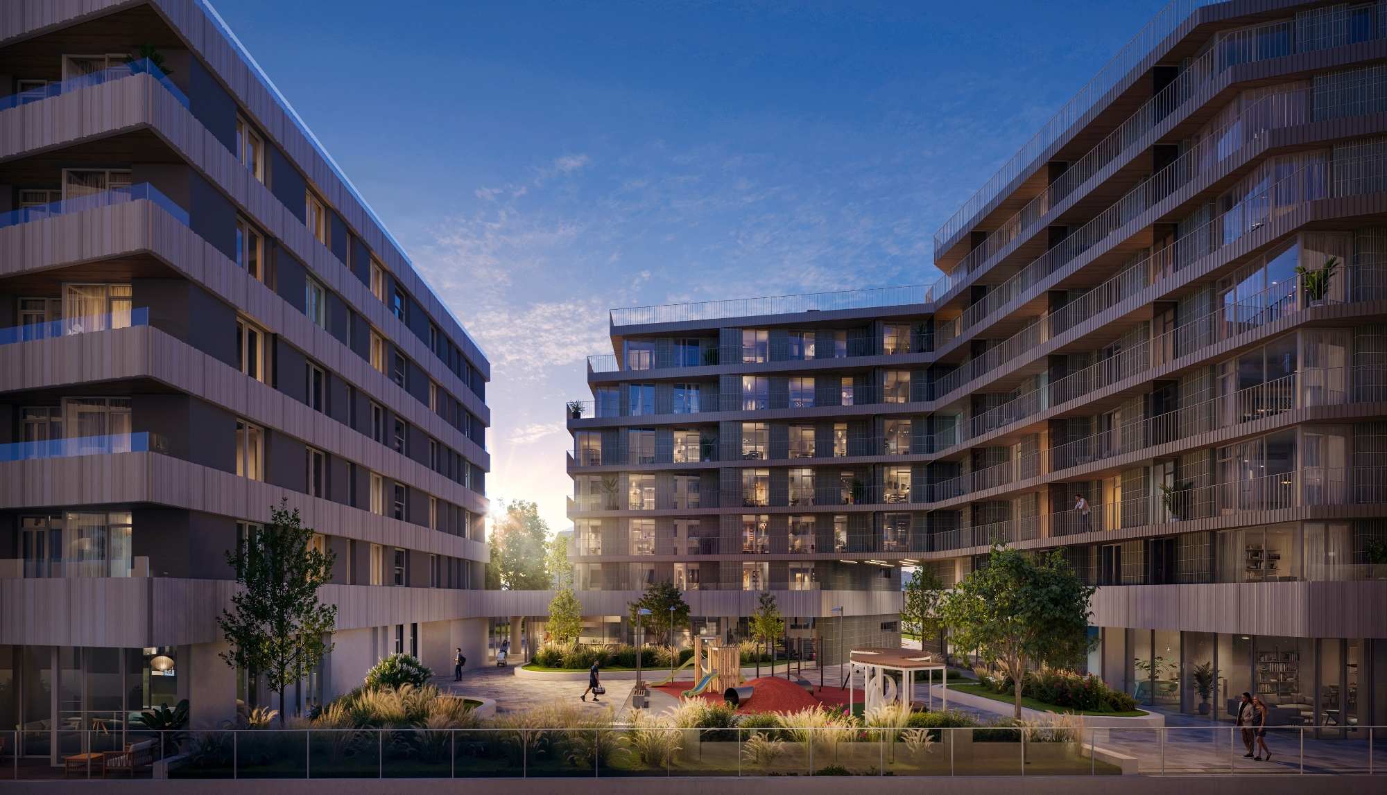 На території передбачені комфортні місця відпочинку на свіжому повітрі. А для найменших мешканців облаштовано дитячий майданчик – безпечний та комфортний простір для активних ігор.