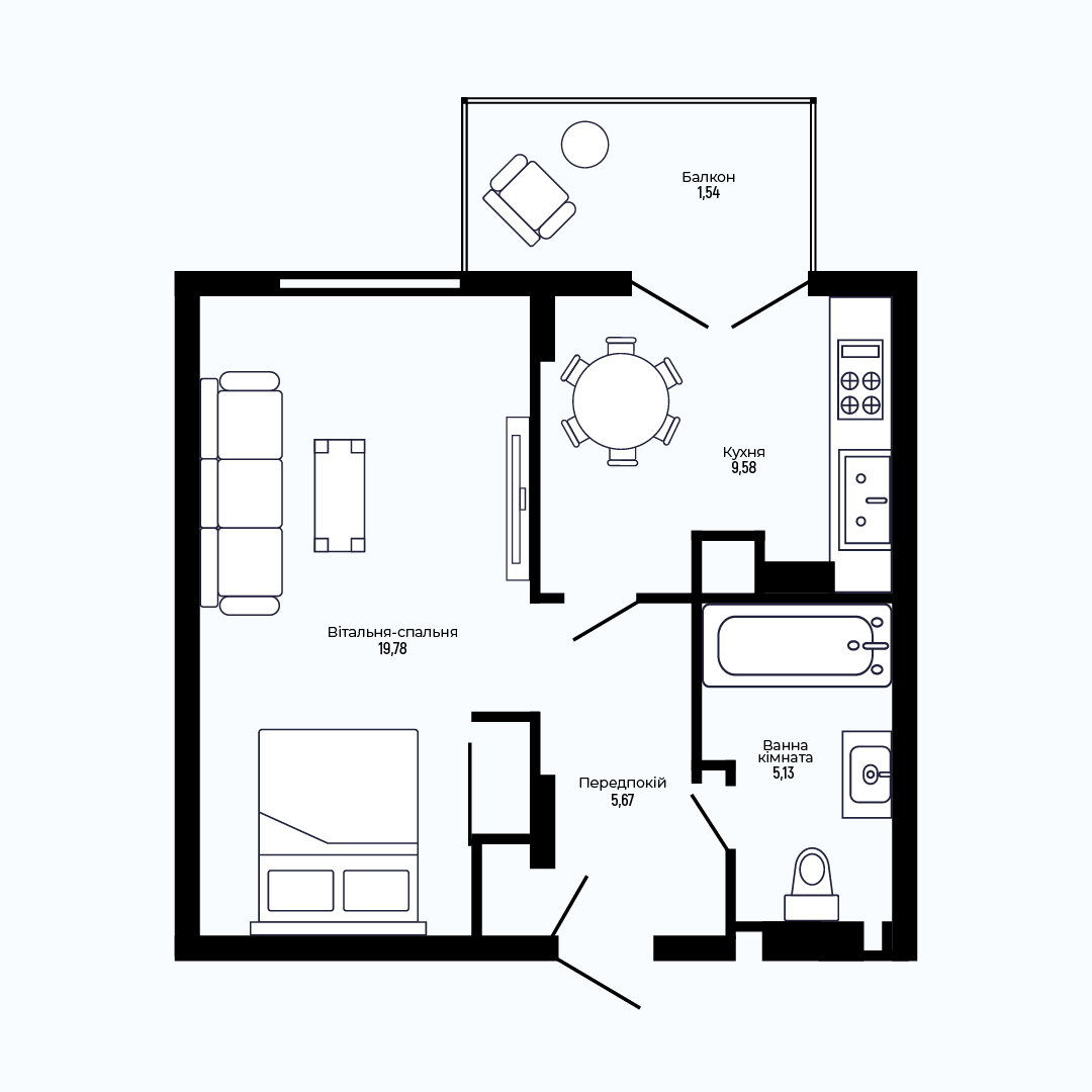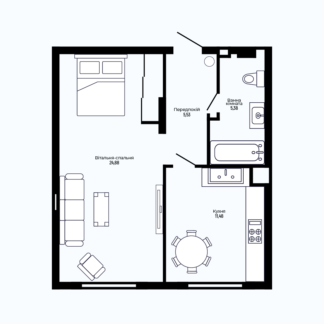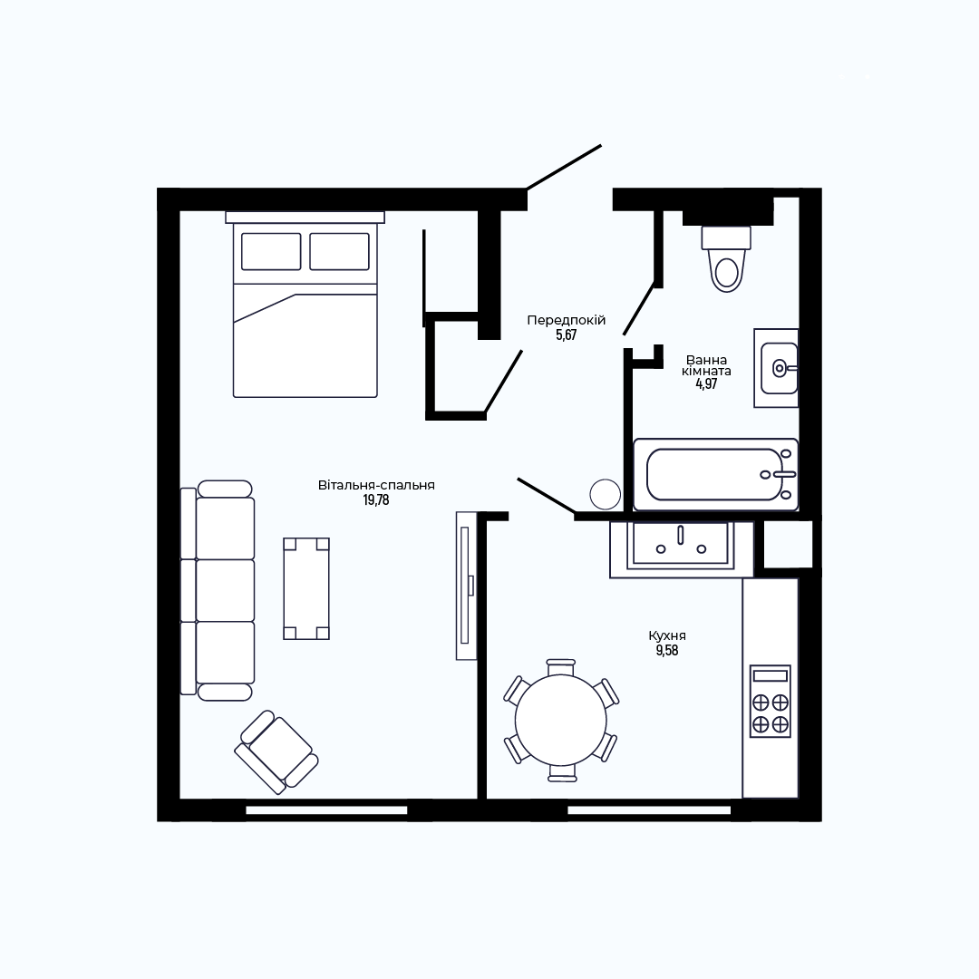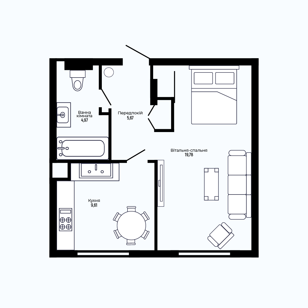 Розтермінування до 12 місяців, перший внесок 50%: $1000/м²