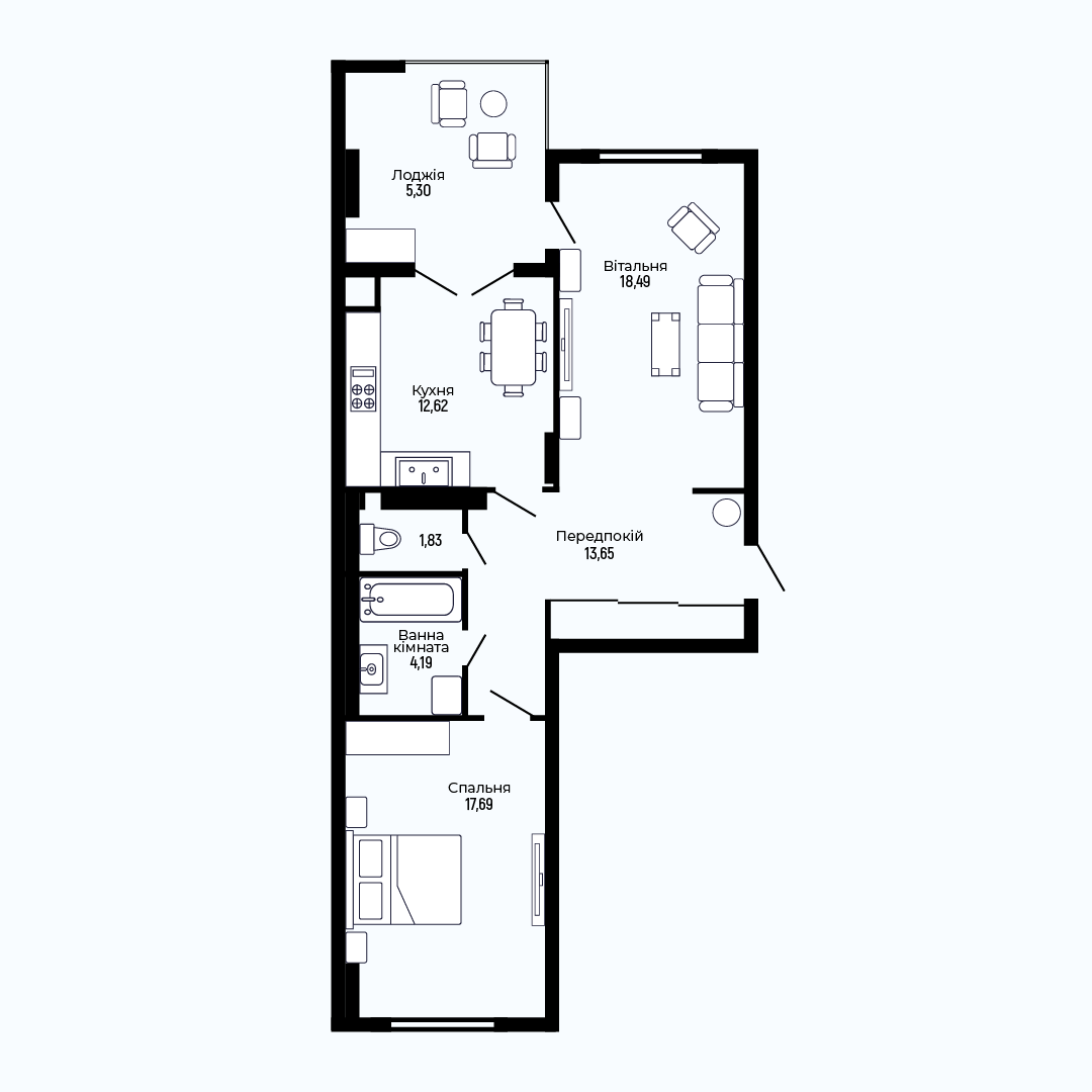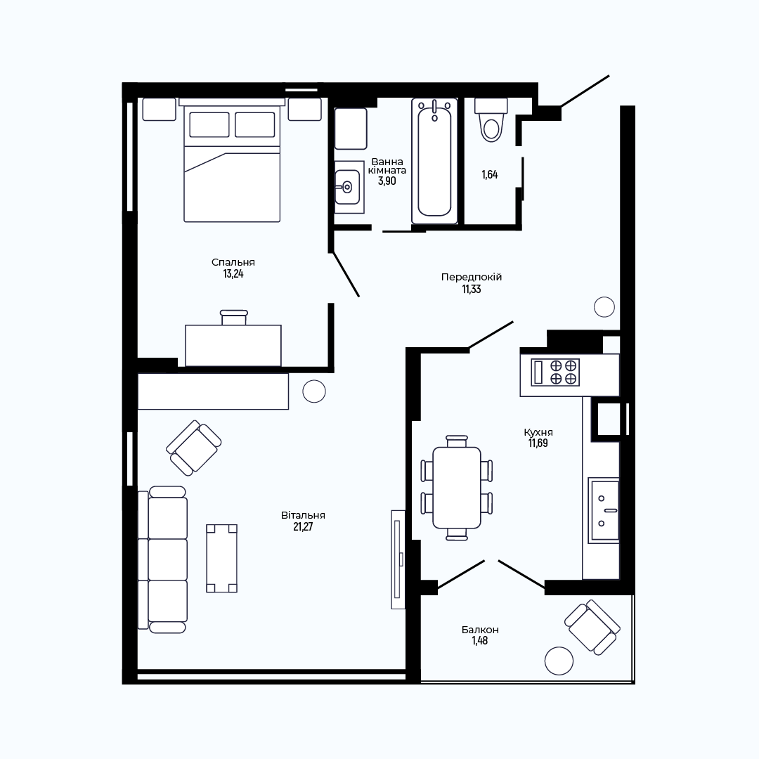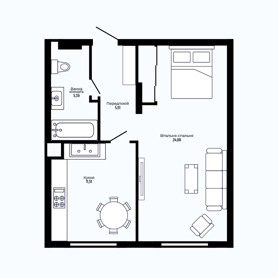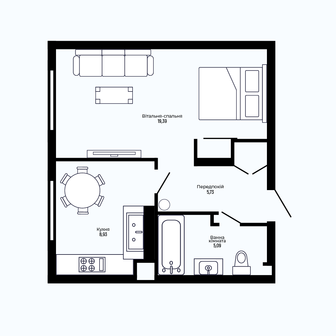 Розтермінування до 12 місяців, перший внесок 50%: $1000/м²