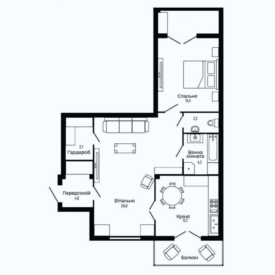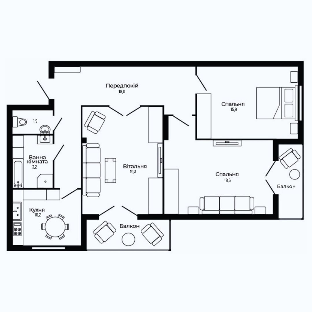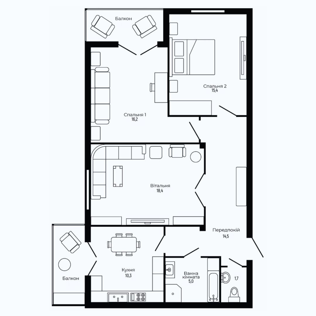 Площа квартир: 70 - 90 м²